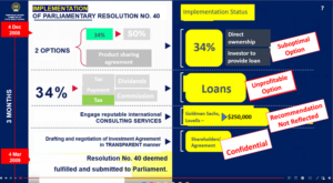 Annex 2, Resolution #40 of 2008 by the State Great Khural of Mongolia approved the basic principles and guidelines for concluding an investment agreement for the joint development of the Oyu Tolgoi copper-gold deposit. Pursuant to that resolution, it was instructed to examine a “production-sharing–based option” when negotiating the investment agreement. However, the Mongolian laws in force at that time, including the Law on Minerals, did not provide for the conclusion of an investment agreement based on the production sharing principle. Consequently, in compliance with the applicable laws, it was agreed that the state-owned share would be 34 percent, and that this share could be further increased to 50 percent, and this was reflected in the Investment Agreement. Therefore, concluding that the equity participation of the State, and the related option of investor-provided financing, was a “poor option” is not consistent with the legal and regulatory framework in force at the relevant time. Furthermore, the OT Shareholders’ Agreement is not confidential and has been publicly disclosed on Oyu Tolgoi’s website and other public sources. |