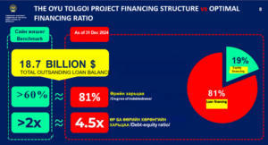 These components are incorporated into the methodology used to assess OT LLC’s overall economic contributions. OT LLC has applied this methodology in its Feasibility Study since 2010 to calculate shareholder returns. According to the most recent calculations, Mongolia’s total share of benefits amounts to 61 percent. As of September 2025, the foreign investor has incurred a cumulative negative cash flow of USD 11 billion, whereas the Government of Mongolia has realized a cumulative positive cash flow of approximately USD 5.3 billion. To date, the Government has not incurred any expenses and holds no debt obligations1 in connection with the project.
