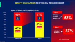 Furthermore, OT LLC has applied a consistent methodology for calculating benefits since 2010, and according to the most recent calculation, Mongolia’s share of the benefits is estimated at 61 percent. However, the experts presented a calculation indicating that Mongolia’s share is 37 percent and disseminated this information to the public without explaining which components were included or how they were assessed, which is inappropriate. |